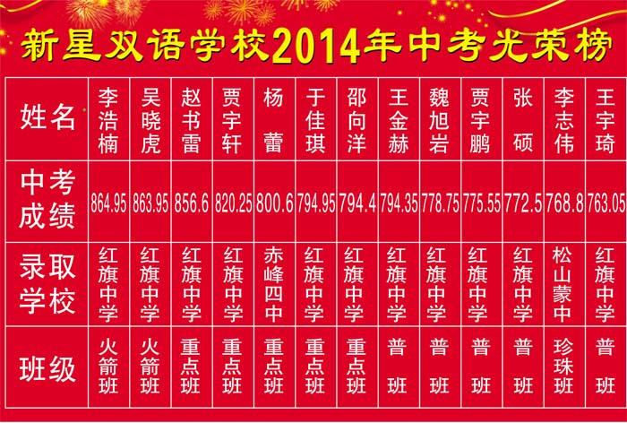 新星雙語學(xué)校:首頁>>>2014年中考光榮榜 |